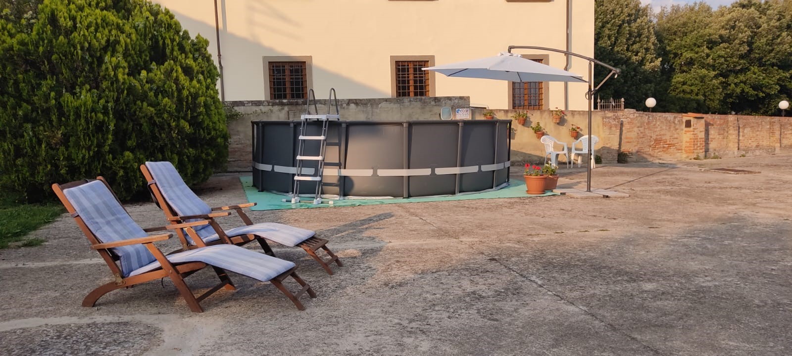 The large games room leads to the terrace with the 5m above ground pool and of course that stunning view. The outdoor furniture provides places to enjoy in the sun and shade and there is a charcoal BBQ - perfect for your family friendly holiday in Tuscany.